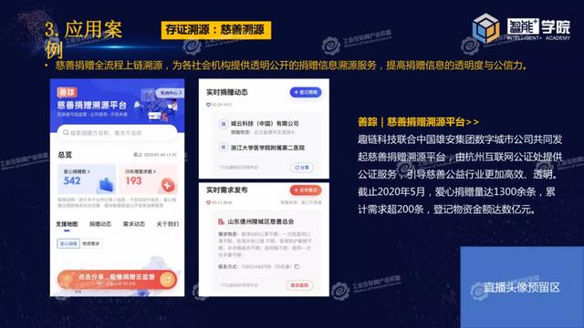 由中國(guó)信息通信研究院聯(lián)合工業(yè)和信息化部人才交流中心、中國(guó)互聯(lián)網(wǎng)協(xié)會(huì)、工業(yè)互聯(lián)網(wǎng)產(chǎn)業(yè)聯(lián)盟、5G應(yīng)用產(chǎn)業(yè)方陣主辦的“同呼吸、共命運(yùn),萬(wàn)眾一心,戰(zhàn)疫情”公益活動(dòng)之“智能+學(xué)院”直播,截至5月13日已成功舉辦了28場(chǎng),在當(dāng)晚舉辦的“區(qū)塊鏈產(chǎn)業(yè)技術(shù)與應(yīng)用”專題中,直播觀看人次數(shù)達(dá)到209.37萬(wàn)。