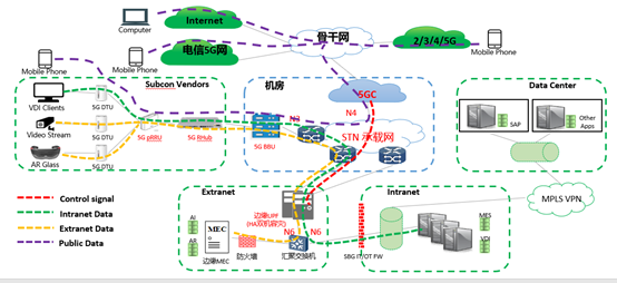 基于中國電信全國一張網(wǎng)的5G SA獨(dú)立組網(wǎng),為園區(qū)打造基于SA 的網(wǎng)絡(luò)切片,通過在無線接入層、承載層、核心網(wǎng)層的網(wǎng)絡(luò)切片,為日星公司打造云網(wǎng)融合的專網(wǎng)通道,形成云網(wǎng)一體的數(shù)據(jù)安全隔離,實(shí)現(xiàn)云邊協(xié)同的超低時(shí)延保障。