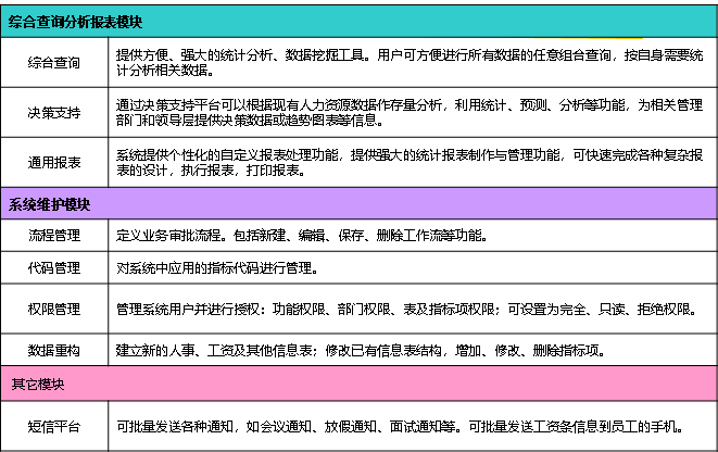 實現人事信息、工資信息、考勤信息等所有人力資源數據重構功能,用戶可根據需要創建數據表、數據項目。