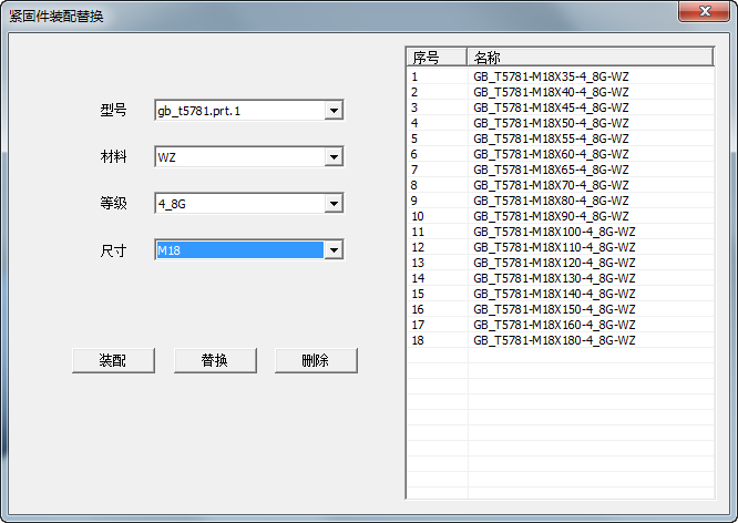 緊固件裝配替換功能,主要用于緊固件的裝配以及替換,其設計界面如下: