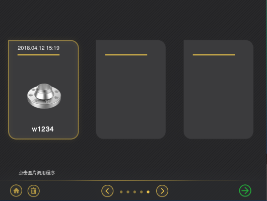 在調(diào)用程序模塊存儲(chǔ)著已編輯保存的所有法蘭程序,在此可對(duì)這些程序進(jìn)行再次編輯調(diào)用或刪除等操作,這里主要介紹再次編輯調(diào)用已加工程序的功能。首先,根據(jù)實(shí)際需要選擇某個(gè)程序,后選擇相應(yīng)加工工步重新進(jìn)行編輯,修改工件尺寸、工藝參數(shù)等信息,一鍵生成可執(zhí)行程序,完成修改,最后可直接運(yùn)行加工程序,進(jìn)行加工。以下展示部分功能界面: