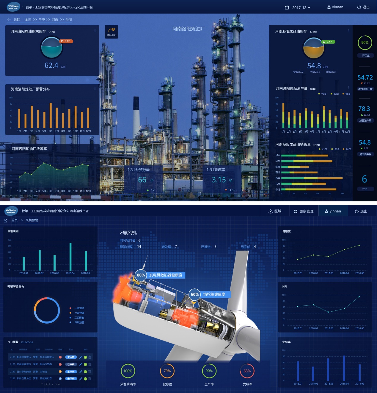 儀表盤管理:針對數據的可視化,儀表盤是數據最終呈現的方法,可以支持歷史數據、實時數據、上傳的文本數據,以及故障數據,主數據、故障預警數據等進行可視化展示,操作方便,支持多種類型的圖標構建。