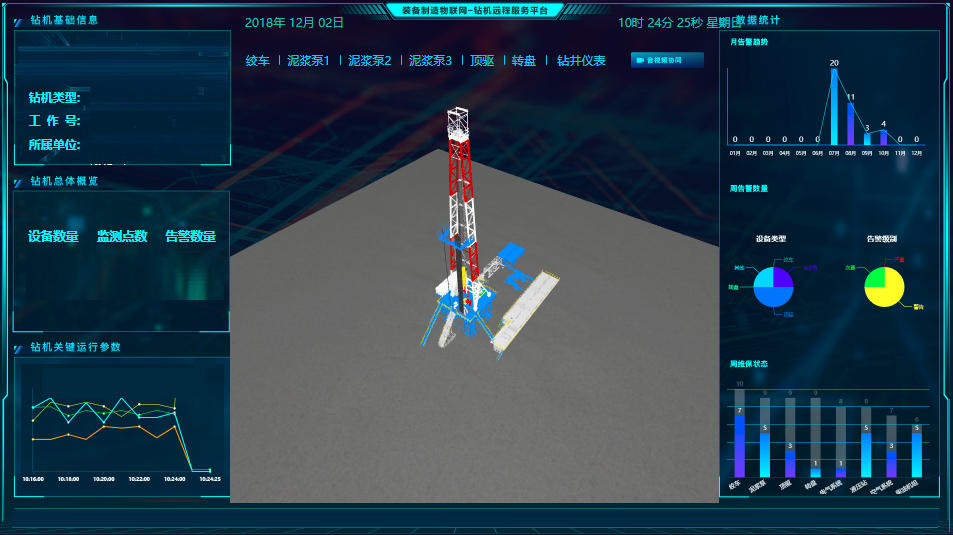 本APP應用于油氣鉆井裝備行業,主要實現以下功能:鉆機在線監測、預測性維護與故障診斷服務、銷售在外配件庫的查詢及鉆機檔案查詢等功能。