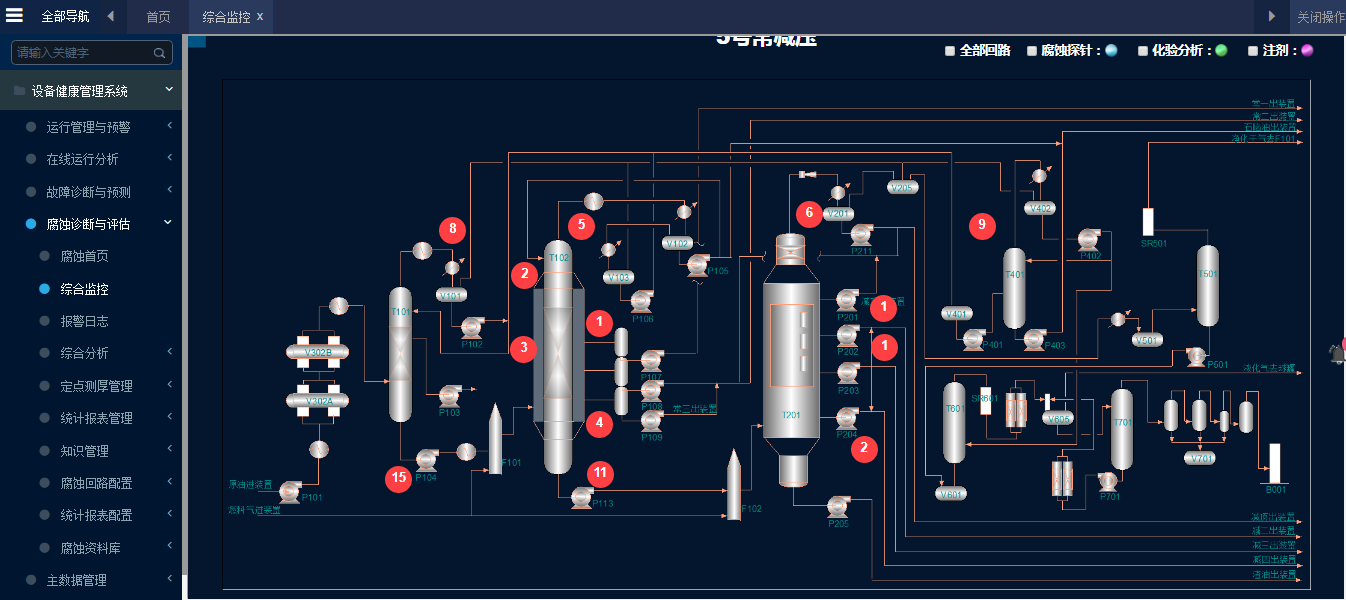 基于數字孿生工業大數據模型的大型工業設備健康管理,幫助企業實現動設備預防性維修,減少非計劃停工。包括:運行管理與預警、在線運行分析、故障診斷與預測和腐蝕評估與預測。