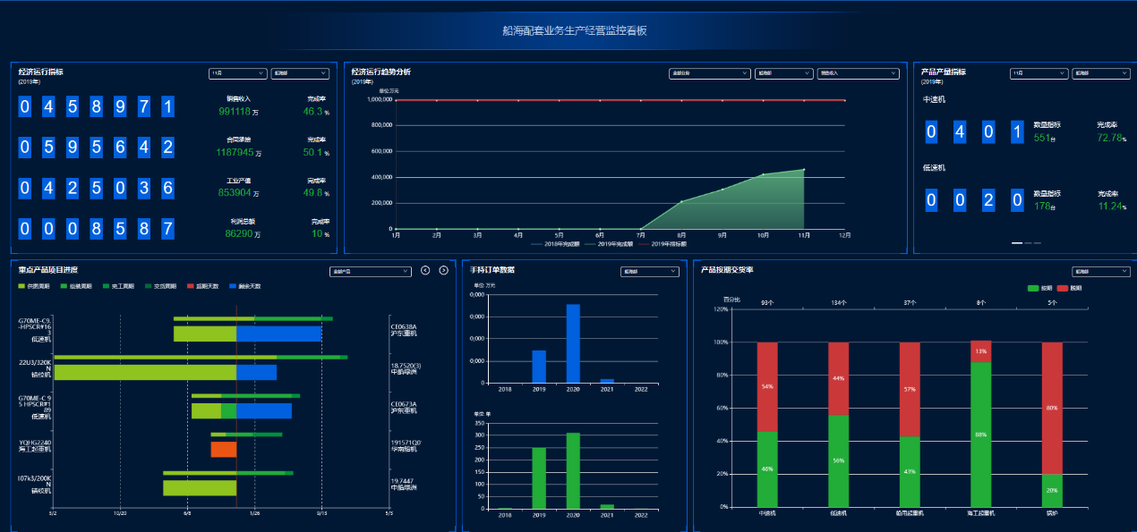 該模塊主要包括企業(yè)及其配套企業(yè)看板,企業(yè)看板中,展示配套企業(yè)的合同比例、總金額比例、訂單情況,生產(chǎn)狀態(tài)情況,拖期風(fēng)險(xiǎn)清單,拖期產(chǎn)品詳情(承接方、采購方、設(shè)備類型、當(dāng)前節(jié)點(diǎn)、狀態(tài)),拖期比例,平均拖期天數(shù)。在非標(biāo)件配套企業(yè)看板中,展示合同數(shù)量,合同總金額,月度、在跟蹤、手持訂單情況,外委非標(biāo)件的生產(chǎn)狀態(tài)詳情,拖期風(fēng)險(xiǎn)清單,拖期詳情等核心信息。