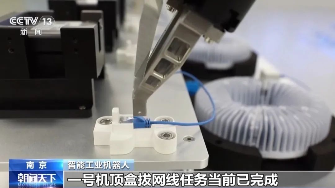 總臺記者現場也體驗了一下工廠正在開發(fā)的人機交互作業(yè)。記者先后發(fā)出拔出、插入機頂盒網線的指令,精細化的操作,智能工業(yè)機器人都順利完成。