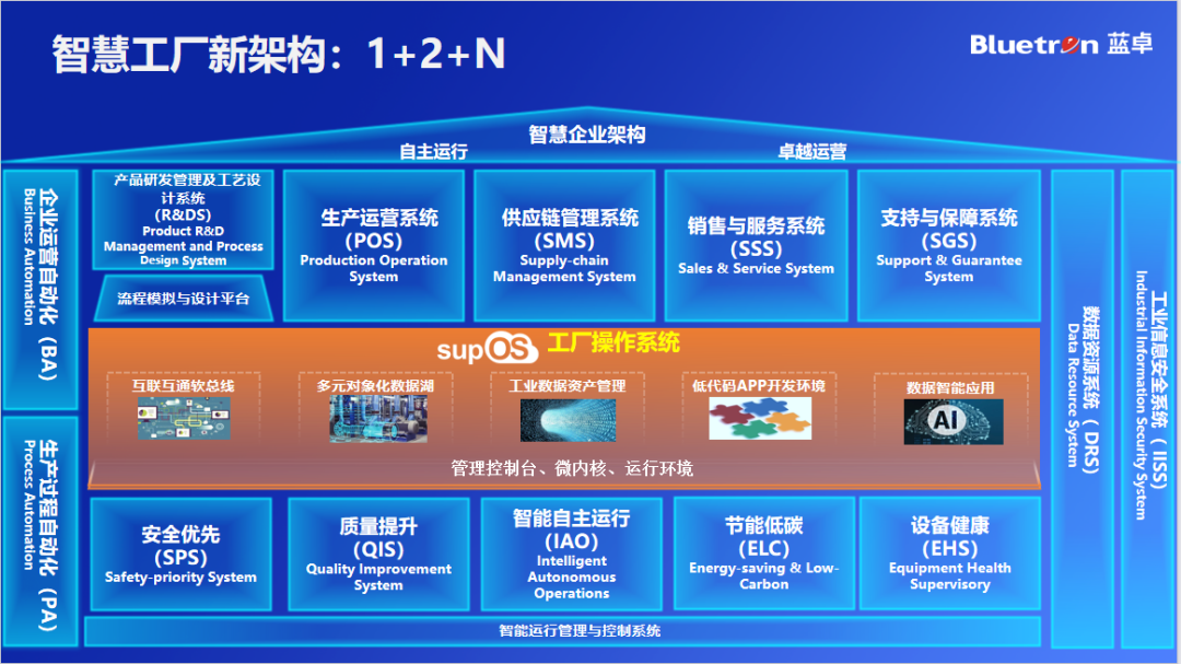 藍卓持續(xù)探索一條適合大規(guī)模、低成本推進智能制造的路徑。2023年,藍卓創(chuàng)新打造“1+2+N”的智慧工廠新架構(gòu)。即1個工廠操作系統(tǒng)supOS;2個自動化,一個是生產(chǎn)過程自動化,一個是企業(yè)經(jīng)營管理自動化;以及N個工業(yè)軟件。基于supOS平臺,對企業(yè)各類數(shù)據(jù)統(tǒng)一集中管理,貫通兩個自動化,同時,基于工業(yè)APP組合應用,賦能企業(yè)數(shù)字化轉(zhuǎn)型。目前,該“中國方案”正揚帆出海,成功應用于沙特阿美、巴斯夫、Indorama、馬來西亞國家石油等海外龍頭企業(yè)。