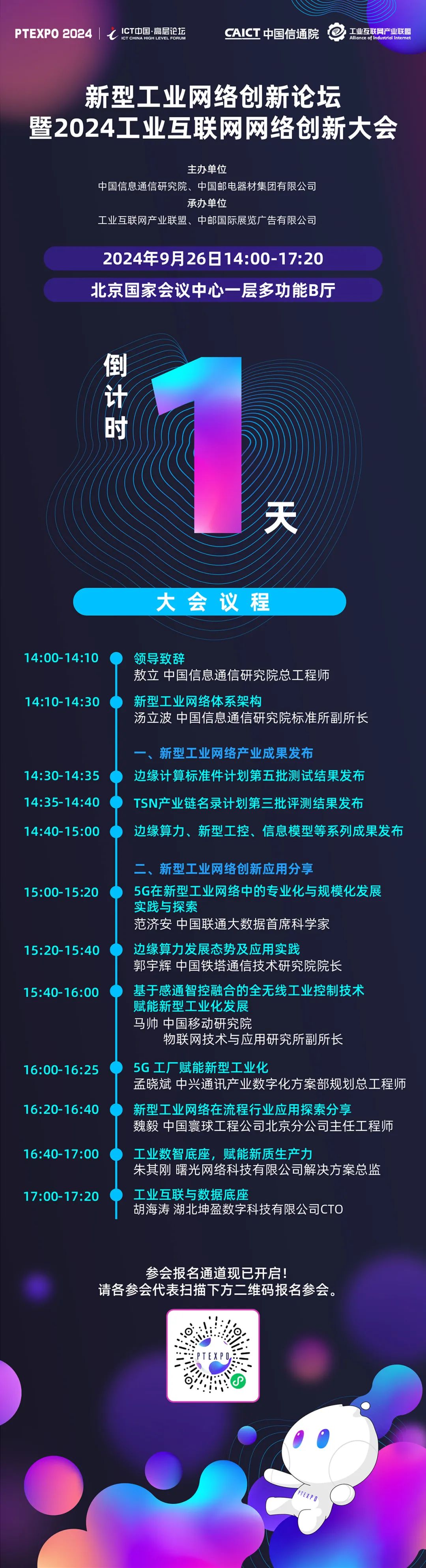 倒計(jì)時(shí)1天!新型工業(yè)網(wǎng)絡(luò)創(chuàng)新論壇暨2024工業(yè)互聯(lián)網(wǎng)網(wǎng)絡(luò)創(chuàng)新大會(huì)邀您參會(huì)