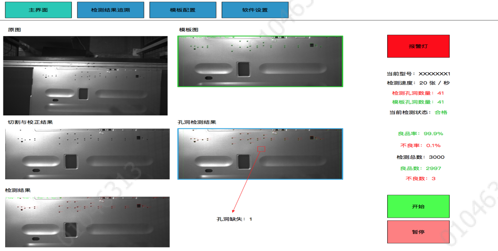 9)模板匹配:與鈑金件的標(biāo)準(zhǔn)模板進行基于位置的匹配,得到孔洞是否正確的結(jié)果。