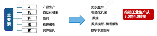 工業(yè)互聯(lián)網(wǎng)平臺通過對人、機、料、法、環(huán)等全要素進行重構(gòu),推動工業(yè)生產(chǎn)從3.0向4.0轉(zhuǎn)變。