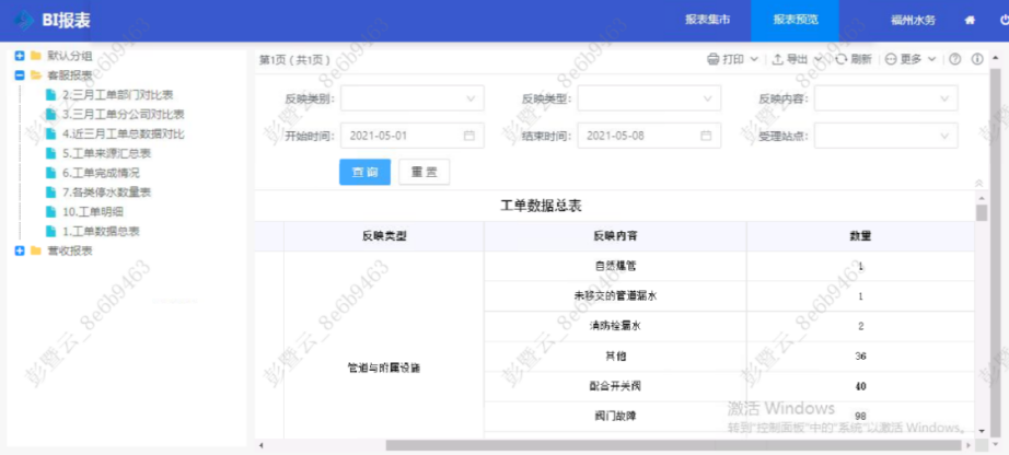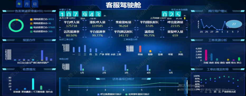 包括1個(gè)綜合業(yè)務(wù)平臺(tái)、2個(gè)駕駛艙、2個(gè)大屏、3個(gè)數(shù)據(jù)挖掘主題(改善每月抄表情況、優(yōu)化水表管理、改善工單處理狀況),共計(jì)88項(xiàng)指標(biāo)和19張報(bào)表,覆蓋了水表、用戶檔案、抄表、計(jì)費(fèi)、工單、報(bào)裝、話務(wù)和收費(fèi)等業(yè)務(wù),極大提升了營(yíng)銷數(shù)據(jù)的使用價(jià)值,為基層業(yè)務(wù)人員日常工作提供了切切實(shí)實(shí)的便利。