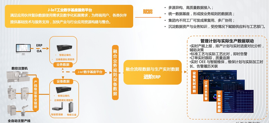 精密注塑數(shù)智場景項目:本項目打造的注塑成型數(shù)智場景,是注塑行業(yè)的標桿,也是當?shù)財?shù)字化智能化車間的示范單位,獲得了用戶集團內部的高度評價,已經形成了體系化、標準化的可推廣復制模式。本項目在注塑成型環(huán)節(jié),以可量化的ROI指標完成了驗收,提升了產品的良率和工藝管理水平,每個工作中心平均年提升效益約85萬元,建設成果包括數(shù)據采集、設備接入、精密注塑模型應用以及IOT-ERP-MES-OA-WMS生態(tài)聯(lián)動模式。