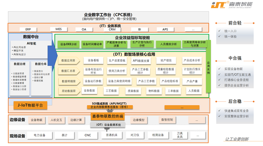 嘉泰智能是工業(yè)互聯(lián)領域數(shù)智場景的核心建設者,在企業(yè)數(shù)字化、智能制造、智能裝備方面有豐富的產品積累和建設經驗的沉淀,竭誠為各行業(yè)提供賦能與服務。感謝工業(yè)互聯(lián)網產業(yè)聯(lián)盟給予此次分享的機會,我們期待與行業(yè)同仁進行廣泛和深入的交流、合作,實現(xiàn)資源和成果的分享,為行業(yè)互聯(lián)互通和共創(chuàng)價值互動起來,助力企業(yè)數(shù)智化轉型和企業(yè)平臺的價值釋放。