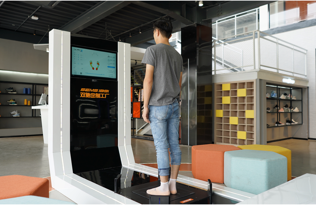 6年執(zhí)著,雙馳正積極迭代研發(fā)手持式采集分析儀、移動(dòng)式量測(cè)服務(wù)車、AI鞋面圖案定制商城等系統(tǒng)設(shè)備,已具備鋪設(shè)足部檢測(cè)服務(wù)網(wǎng)絡(luò)能力與“按雙定制,7天發(fā)貨”的供應(yīng)鏈能力,即將開(kāi)啟“舒識(shí)定制”服務(wù)渠道與垂直品類定制鞋品牌的建設(shè)孵化工作,已在莆田、福州及北京已布設(shè)十多家線下定制鞋門(mén)店。