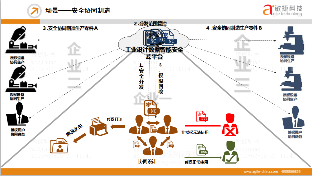 通過協(xié)同制造,中車株所各上下游企業(yè)間可以進(jìn)行生產(chǎn)進(jìn)度信息的高度、實時共享,實現(xiàn)其透明化。同時,項目相關(guān)企業(yè)的生產(chǎn)過程數(shù)據(jù)信息在網(wǎng)絡(luò)協(xié)同制造鏈中順暢流動,可以大大提升智能制造的效率。設(shè)計部門將設(shè)計圖紙通過工業(yè)數(shù)據(jù)智能安全云平臺安全分發(fā)給各協(xié)同制造生產(chǎn)零件企業(yè)進(jìn)行生產(chǎn)制作,給外協(xié)企業(yè)的機(jī)密文件進(jìn)行授權(quán),非授權(quán)人員無法使用文件,授權(quán)時可設(shè)置時間、次數(shù),不同的外協(xié)企業(yè)獲取文件后必須通過各自特定的外發(fā)瀏覽插件打開外發(fā)文件,而且文件受到嚴(yán)格的權(quán)限控制,阻止了文件從外協(xié)企業(yè)泄密。