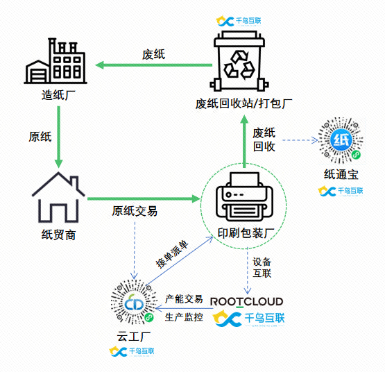 千鳥互聯(lián)通過“智能云工廠+閉環(huán)供應鏈”雙輪驅動模式助力印刷包裝產業(yè)升級,改善印刷行業(yè)營商環(huán)境,解決訂單分配協(xié)同困難、生產進度難把控、企業(yè)融資困難等產業(yè)管理難題;千鳥互聯(lián)經(jīng)工業(yè)互聯(lián)網(wǎng)改造升級,打通整個交易鏈條,縮短廢紙回收、原紙采購、產能交易的中間環(huán)節(jié),大幅提升交付效率,形成從原紙到廢紙的業(yè)務閉環(huán),提升流通效率,降低供應鏈成本。
