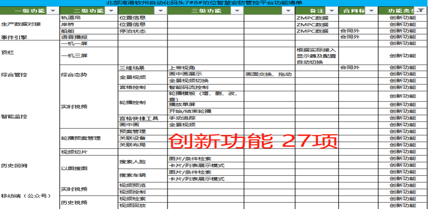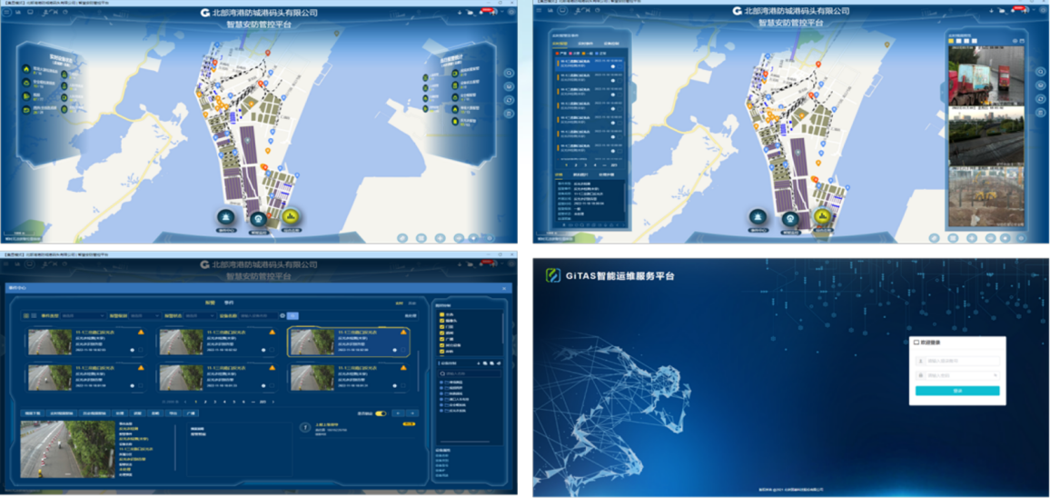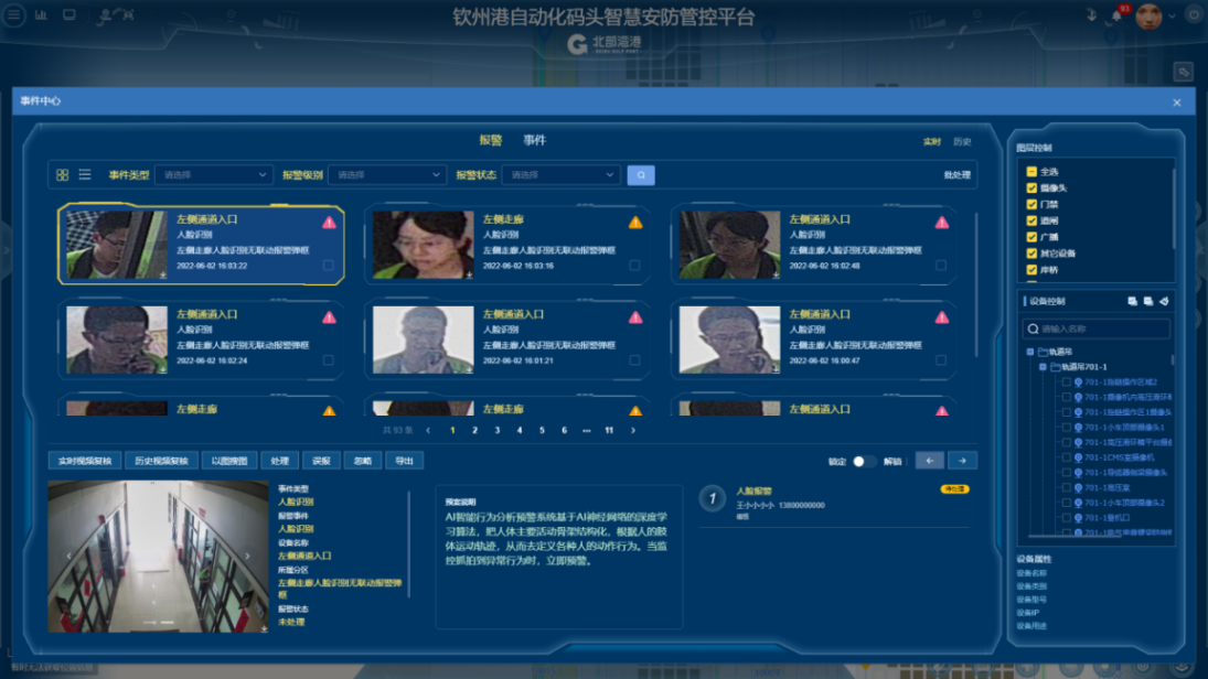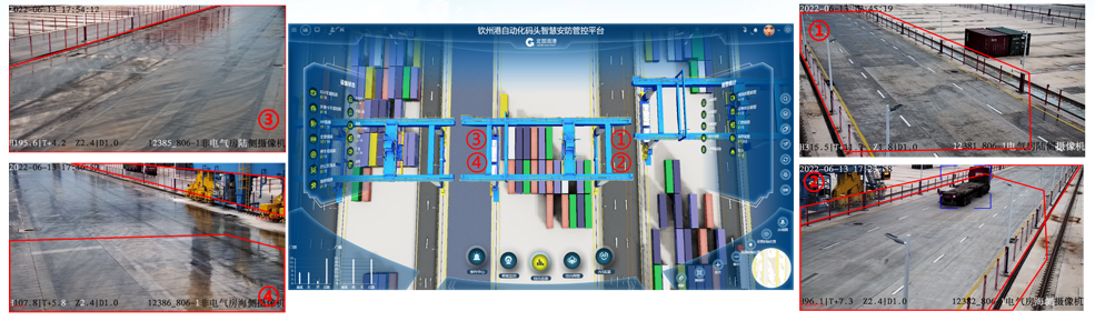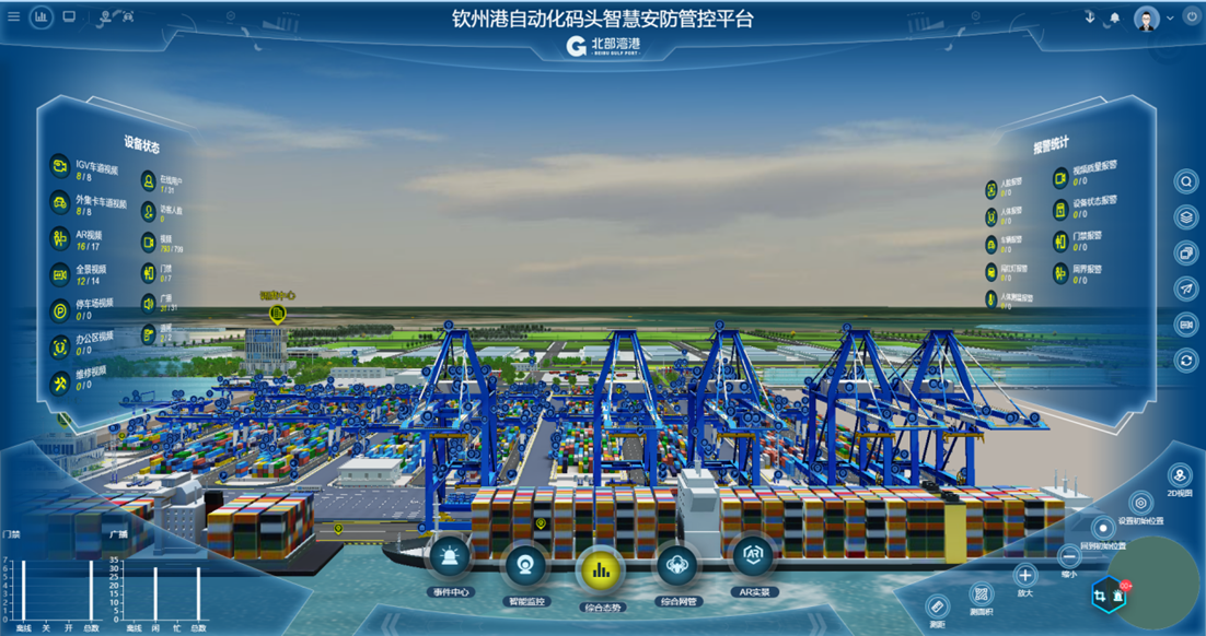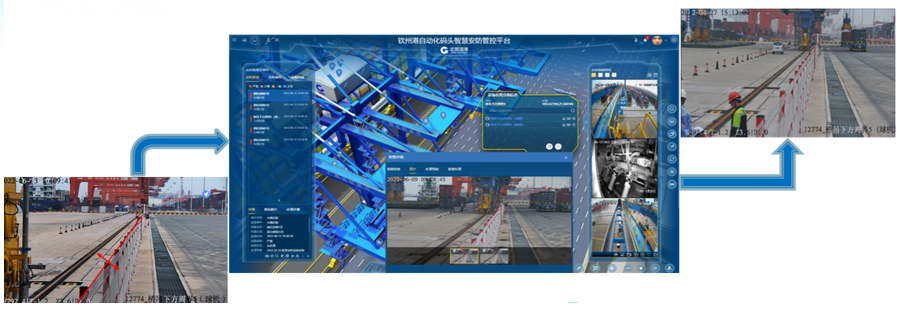 欽州自動化集裝箱碼頭智慧安防管控系統(tǒng)創(chuàng)新點:多部門多業(yè)務(wù),雙區(qū)人車識別,AR融合,路徑漫游、軌跡追溯、網(wǎng)絡(luò)設(shè)備監(jiān)管、多屏交互;