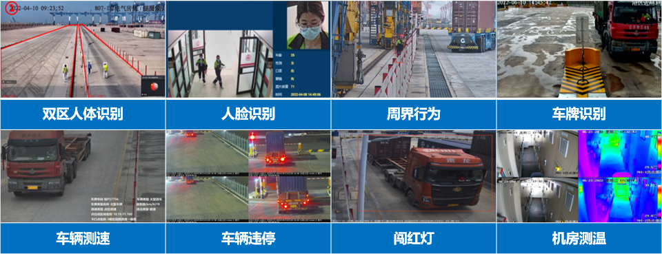 智能應(yīng)用:周界、人車結(jié)構(gòu)化、堆場測溫預(yù)警、安全帽,車輛逆行。