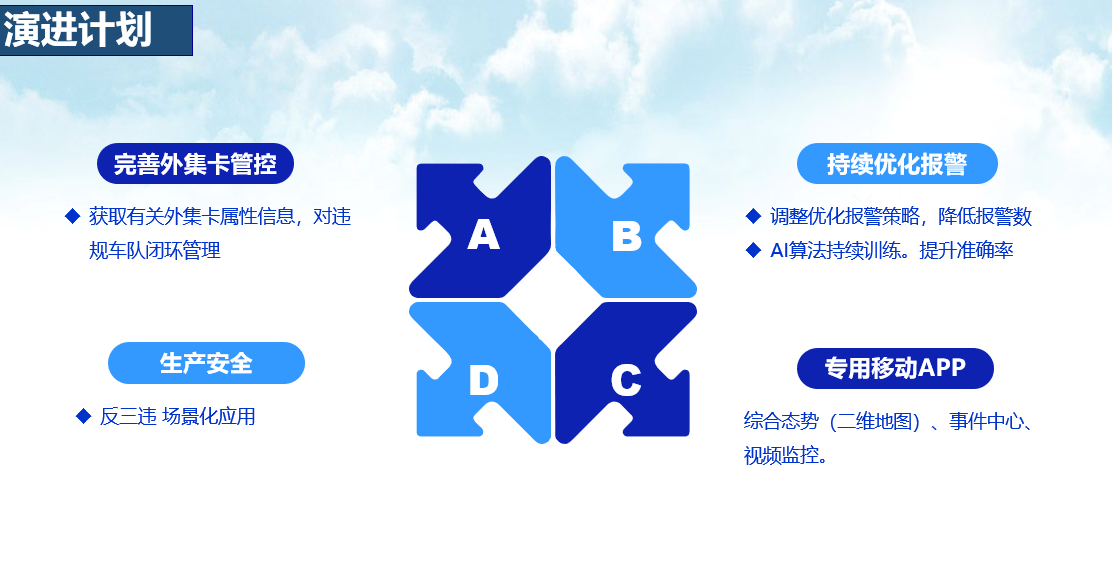 (3)生產(chǎn)安全: 依據(jù)目前已部署的安防資源,開發(fā)更多“反三違”場景化應(yīng)用以及HSE安全生產(chǎn)管理體系的數(shù)字化流程化管理,對違章操作過程進行多場景監(jiān)管和預(yù)警。