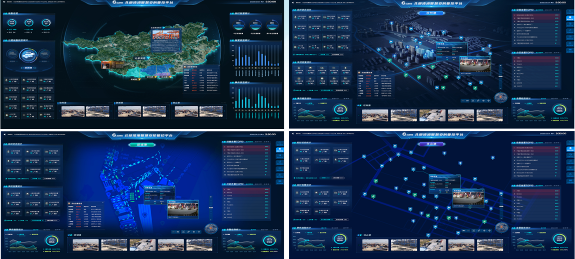 構(gòu)建三港智慧安防業(yè)務(wù)“駕駛艙”,進行數(shù)據(jù)分類、統(tǒng)計分析、圖表數(shù)據(jù)展示,關(guān)鍵點位可以視頻實時輪巡方式顯示;