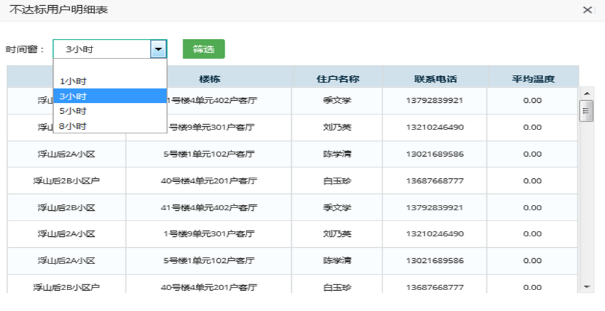 圖11用戶室溫與達標率在線監(jiān)測 | 圖12不達標用戶明細表 |