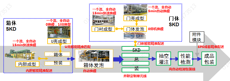 沈陽冰箱柔性化生產的目標是滿足批量為“1”的定制定單高效生產,具體開展方式通過以下四個方面: