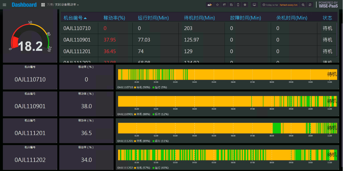 圖4 車床/銑床設備運行稼動率實時管理