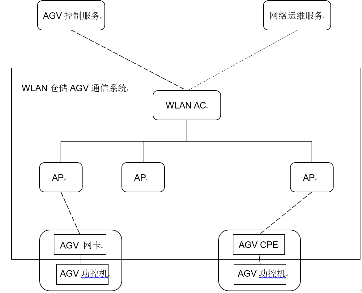 WLAN倉儲AGV通信系統由AC、AP、AGV網卡(或CPE)三部分共同組成(見圖1-8)。