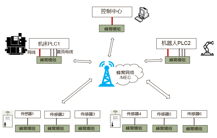 工業數據通過蜂窩網絡傳輸時,工業設備需要集成蜂窩模組,并實現工業應用和蜂窩模塊的互通。