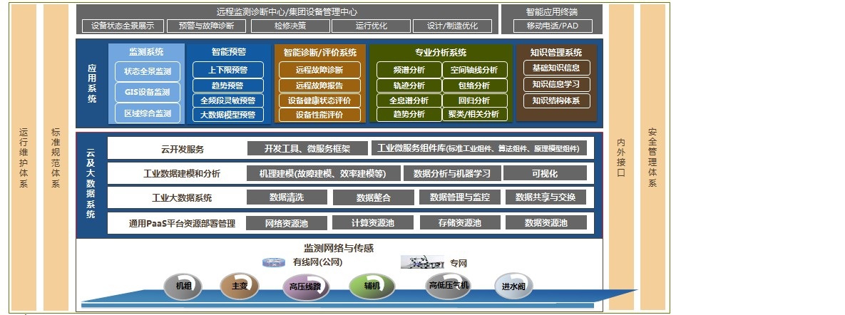 平臺(tái)功能包括設(shè)備狀態(tài)的可視化展示、智能預(yù)警與評(píng)價(jià)、設(shè)備運(yùn)行優(yōu)化指導(dǎo)、檢修決策等。