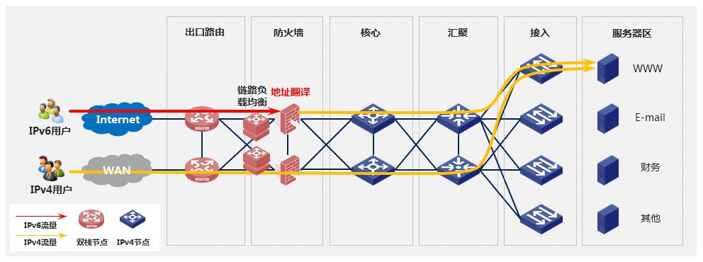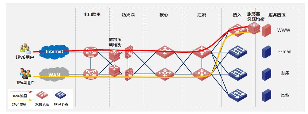 2)DNS系統(tǒng):添加AAAA記錄,對(duì)外發(fā)布IPv6解析地址。若存在多ISP出口,建議部署雙棧鏈路負(fù)載均衡。