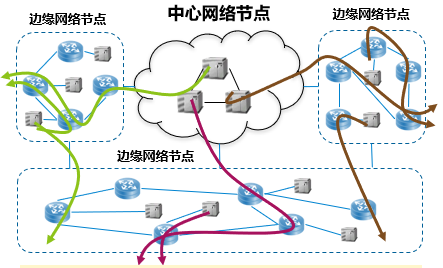 集中式DC部署呈現(xiàn)匯聚式流量模型,以主機為請求對象效率最高,流量的疏導和優(yōu)化在匯聚式流量模型中呈現(xiàn)一定規(guī)律性,較為容易疏導。