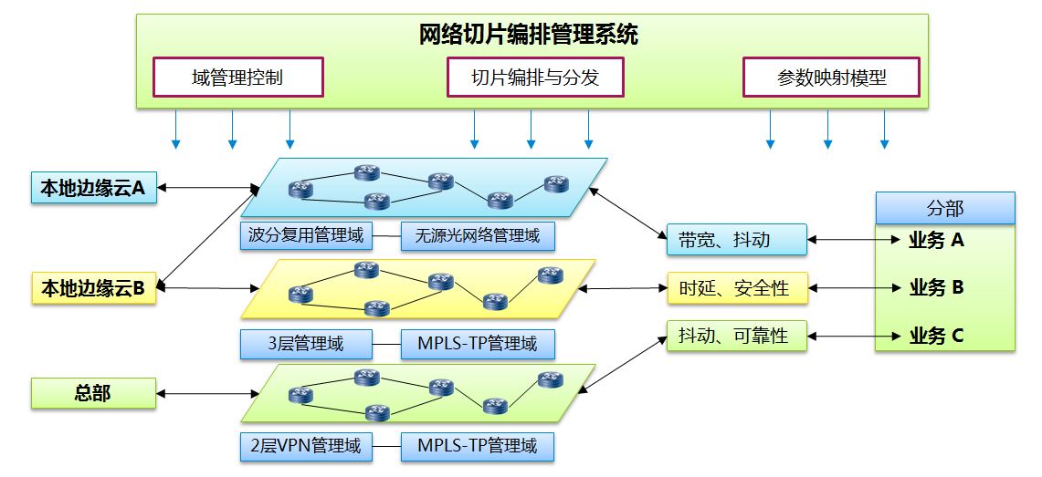 異構(gòu)性:網(wǎng)絡(luò)切片可以兼容承載網(wǎng)各管理域,形成全網(wǎng)絡(luò)資源視圖,實現(xiàn)端到端編排。