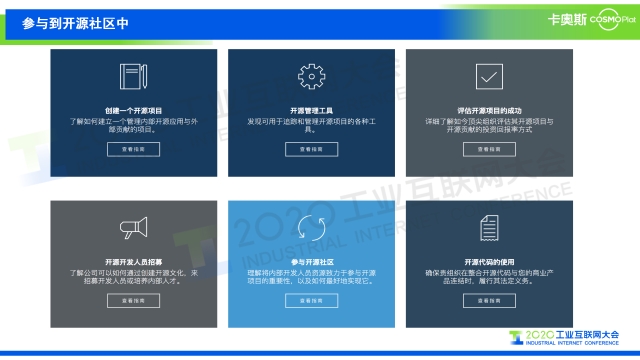 點(diǎn)擊下方鏈接,觀看演講視頻 專家說 “給大家一些在開源領(lǐng)域?qū)用娴慕ㄗh和思考。第一,項(xiàng)目平臺實(shí)現(xiàn)賦能與管理,要提供開源項(xiàng)目代碼托管、備份、交流的工具,通過一些工具來完善并且促進(jìn)我們開源項(xiàng)目的管理。第二,輔助開源項(xiàng)目管理,要定期關(guān)注運(yùn)營報(bào)告,同時(shí)要制定社區(qū)和整個(gè)項(xiàng)目的管理規(guī)則。第三,發(fā)起開源項(xiàng)目,支持開源項(xiàng)目,要從制定標(biāo)準(zhǔn)、開發(fā)工具,一致性認(rèn)證、性能測評等等方面來推進(jìn)。最后,開源社區(qū)的聯(lián)合與推廣,要做到產(chǎn)學(xué)研各個(gè)層面的聯(lián)合。開源不僅僅是源碼的開源,更重要的是我們要做到生態(tài)的建設(shè)。只有這樣,才能實(shí)現(xiàn)開源的真正推廣與落地。 以下是演講PPT 敬請閱讀