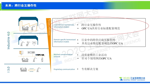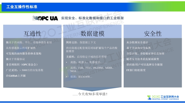 點(diǎn)擊下方鏈接,觀看演講視頻 專家說 “OPC UA是一個(gè)擁有良好互操作性的標(biāo)準(zhǔn),它為用戶提供了安全和標(biāo)準(zhǔn)化的信息和接口,很多會(huì)員也好,供應(yīng)商也好,終端用戶也好,使用OPC UA是因?yàn)樗軌蚝芎玫膶?shí)現(xiàn)跨供應(yīng)商的數(shù)據(jù)交互。同樣,OPC UA的開放性也可以使這些終端用戶為未來即將到來的技術(shù)實(shí)現(xiàn)做好準(zhǔn)備。OPC UA通過三種方式來保障信息安全,即信息加密、身份識(shí)別、權(quán)限管理,與操作系統(tǒng)大致相似,所以O(shè)PC UA也被稱為是能夠提供系統(tǒng)級(jí)安全防護(hù)的標(biāo)準(zhǔn)。總的來說,OPC UA讓機(jī)器擁有信息模型,通過信息模型擁有自我描述的能力,從而能夠極大的減少配置工作,降低工程成本。” 以下是演講PPT 敬請(qǐng)閱讀