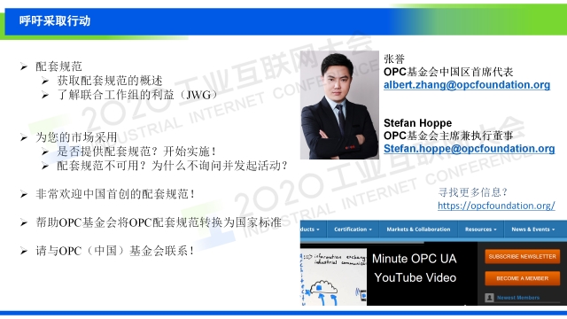 在2020工業(yè)互聯(lián)網(wǎng)大會(huì)“工業(yè)互聯(lián)網(wǎng)新技術(shù)”主題論壇上,OPC基金會(huì)中國(guó)區(qū)首席代表張譽(yù)發(fā)表題為《OPC基金會(huì)與OPC統(tǒng)一架構(gòu)》的演講,介紹了OPC UA的概念及應(yīng)用。