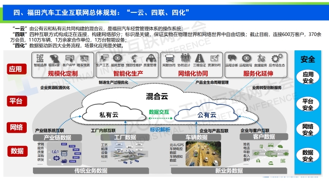 “近幾年,商用車客戶結構和需求發生了很大變化,購車關注點也從價格向全生命周期運營成本TCO轉變。同時,個性化的定制需求逐漸增多,智能網聯技術變革,為商用車行業帶來了新的機遇,打開產品價值上升的通道,同時也為商用車市場競爭開創了新賽道。在此基礎上,福田汽車建起完善的“一云、四聯、四化”的工業互聯網頂層架構,指引福田汽車工業互聯網做到數據安全、網絡安全、平臺安全、應用安全,同時助力工業生產的過程優化、企業資源配置優化及汽車運行的智能化。未來,福田汽車將加強力度推進,將借助5G+工業互聯網模式,打造新的汽車產業生態,變革汽車產業體系,提升國產汽車品牌整體競爭力。”
