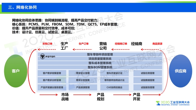 在2020工業互聯網大會工業互聯網“5G與工業互聯網融合發展”主論壇上,北汽福田汽車集團副總經理楊國濤發表題為《工業互聯網賦能商用車第一品牌》的演講,分享福田汽車對工業互聯網的探索及實踐經驗。