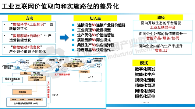 在談及“工業(yè)互聯(lián)網(wǎng)價值取向和實(shí)施路徑的差異化”時,余曉暉表示工業(yè)互聯(lián)網(wǎng)一定是數(shù)據(jù)驅(qū)動的,但又不只是數(shù)據(jù)驅(qū)動,它會和工業(yè)、行業(yè)本身結(jié)合。有三個方面,第一是“數(shù)據(jù)科學(xué)+工業(yè)知識” 創(chuàng)新增強(qiáng)范式,第二是“數(shù)據(jù)驅(qū)動+自動化”生產(chǎn)運(yùn)營智能優(yōu)化,第三是“數(shù)據(jù)驅(qū)動+信息化”產(chǎn)業(yè)鏈價值鏈協(xié)同優(yōu)化,這也是工業(yè)互聯(lián)網(wǎng)現(xiàn)在的價值所在,把傳統(tǒng)工業(yè)已有的體系做更好的結(jié)合,形成新的變革模式。