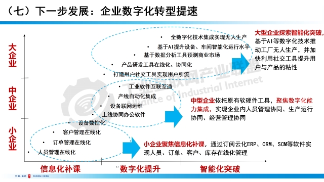 最后,余曉暉對下一步發(fā)展表示,未來企業(yè)將從信息化補(bǔ)課、數(shù)字化提升和智能化突破三個方向進(jìn)行轉(zhuǎn)型提速,最終實(shí)現(xiàn)大中小型企業(yè)共同向智能化升級方向發(fā)展。