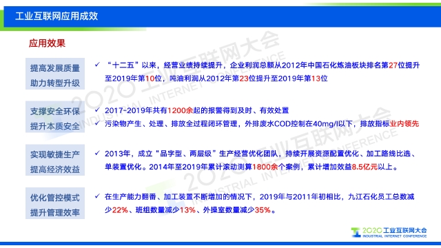在2020工業互聯網大會“工業互聯網行業應用”主題論壇上,中國石油化工股份有限公司九江石化分公司信息中心主任徐燕平發表題為《九江石化工業互聯網應用實踐》的演講,分享九江石化近幾年在工業互聯網和智能工廠建設方面的實踐。