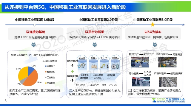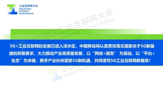 “中國移動積極落實工信部512工程,全面實施“五個升級”發(fā)展策略,一是網(wǎng)絡(luò)升級,構(gòu)建全球領(lǐng)先的新一代5G+工業(yè)互聯(lián)網(wǎng)智能基礎(chǔ)設(shè)施;二是平臺升級,發(fā)揮5G放大、疊加、倍增效應(yīng),全面升級工業(yè)互聯(lián)網(wǎng)平臺體系;三是應(yīng)用升級,深入典型生產(chǎn)場景,打造產(chǎn)業(yè)數(shù)字化“樣板房”;四是模式升級,需求共同發(fā)現(xiàn)、產(chǎn)品共同創(chuàng)新、項目共同交付、價值共同創(chuàng)造,促進(jìn)跨界融合創(chuàng)新;五是生態(tài)升級,推出四類合作方式,做大工業(yè)互聯(lián)網(wǎng)朋友圈。目前,聚焦智慧工廠、智慧鋼鐵、智慧礦山、智慧電力、智慧港口等垂直行業(yè)進(jìn)行深入拓展,已初步形成規(guī)模示范效應(yīng)?!?/p>