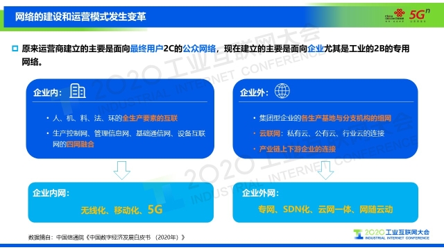 8月30日上午,在2020工業(yè)互聯(lián)網(wǎng)大會“5G與工業(yè)互聯(lián)網(wǎng)融合發(fā)展”主題論壇上,中國聯(lián)合網(wǎng)絡通信股份有限公司集團有限公司政企客戶事業(yè)群高級副總裁陳揚帆以《中國聯(lián)通5G+工業(yè)互聯(lián)網(wǎng)- 5G賦能,智聯(lián)未來》為題作演講,分享了中國聯(lián)通在5G+工業(yè)互聯(lián)網(wǎng)融合發(fā)展方面的一些探索和實踐。