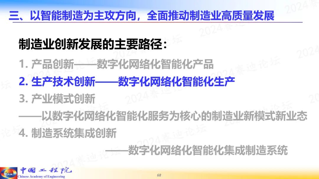 4月2日,由中國電子信息產業發展研究院(賽迪研究院)、工業和信息化部新型工業化研究中心主辦的2024賽迪論壇在京舉辦。中國工程院院士、國家制造強國建設戰略咨詢委員會主任周濟在主旨演講中表示,推進人工智能賦能新型工業化,是推進新型工業化,加快建設制造強國的技術路線。