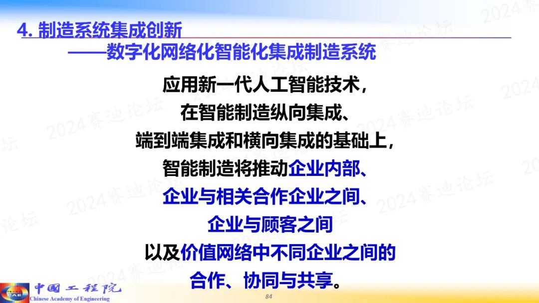 第三,智能制造是一個大系統,貫穿于產品、生產、服務等制造全生命周期的各個基本環節,在工業互聯網和智能云平臺支持下,交融成為智能集成制造系統。