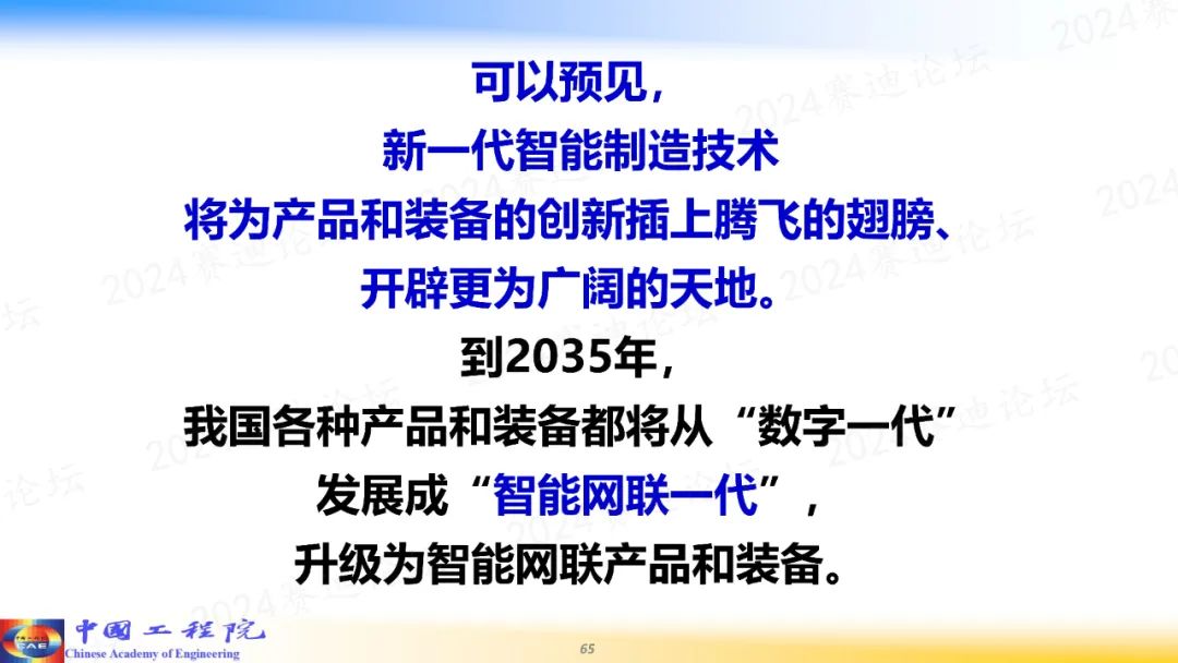 周濟指出,從現在到2035年,我國的智能制造發展總體將分成兩個階段來實現:第一是數字化轉型階段,要深入推進“制造業數字化轉型重大行動”。到2027年,規上企業基本實現數字化轉型,數字化制造在全國工業企業基本普及;同時,新一代智能制造技術的科研和攻關取得突破性進展,試點和示范取得顯著成效。第二是智能化升級階段,深入推進“制造業智能化升級重大行動”。到2035年,規上企業基本實現智能化升級,數字化網絡化智能化制造在全國工業企業基本普及,我國智能制造技術和應用水平走在世界前列,中國制造業智能升級走在世界前列。