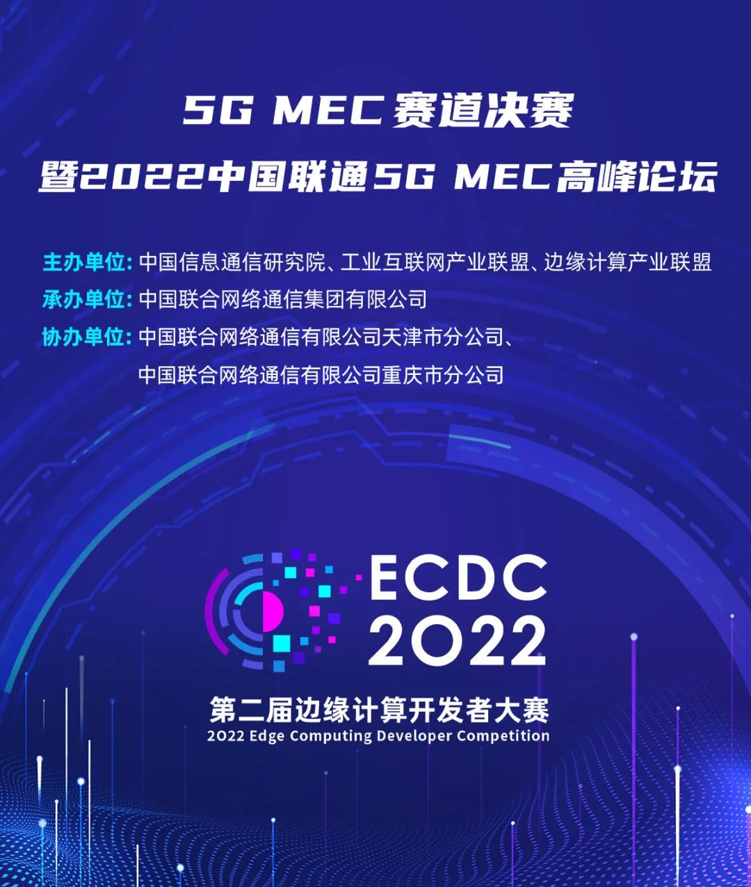 2022年12月23日,第二屆邊緣計算開發者大賽(ECDC 2022)“5G MEC”賽道決賽暨2022中國聯通5G MEC高峰論壇以線上形式成功舉辦。本次活動由中國信息通信研究院、工業互聯網產業聯盟、邊緣計算產業聯盟共同主辦,中國聯合網絡通信集團有限公司承辦,中國聯合網絡通信有限公司天津市分公司、中國聯合網絡通信有限公司重慶市分公司協辦。來自中國信通院、中國聯通、重慶朗維機電有限公司、網絡通信與安全紫金山實驗室等單位的領導、行業專家、參賽成員等共同參與了本次活動。