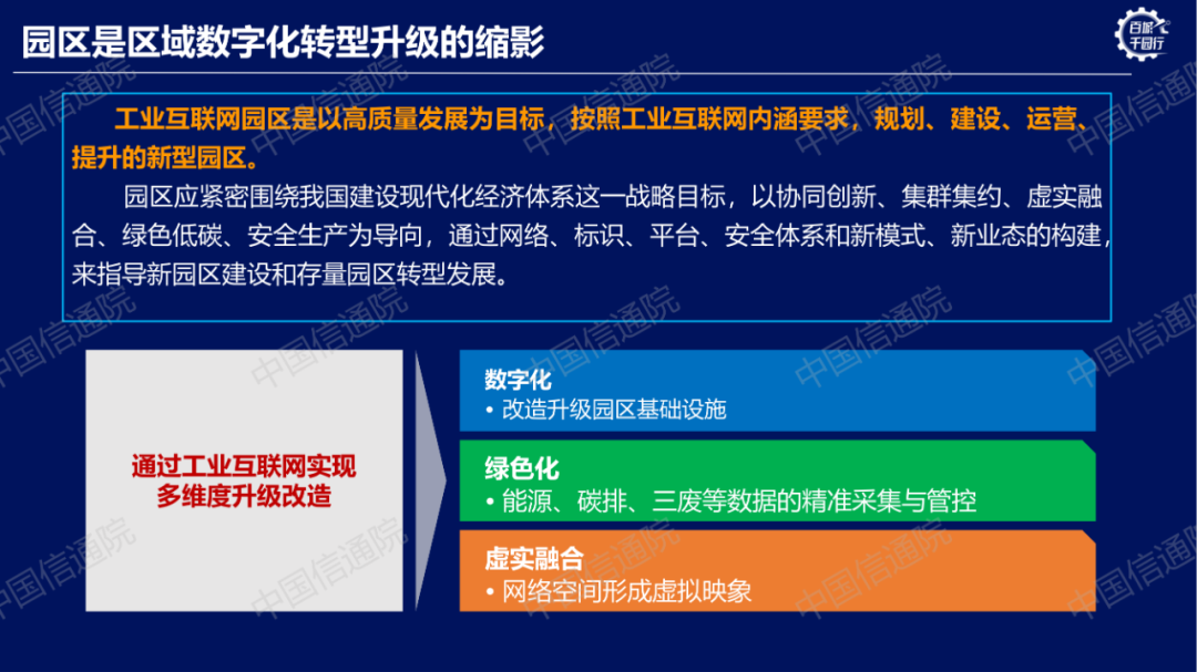 園區數字化轉型是促進我國數字經濟發展的重要戰略。隨著新一代信息技術與實體經濟的深度融合,園區正在加速數字化轉型發展,通過引入工業互聯網,實現園區數字化、綠色化、虛實融合多維度升級改造。