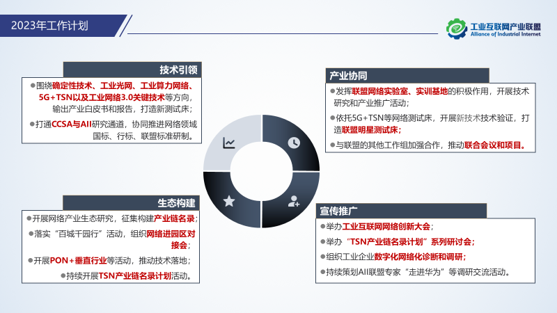 2023年,聯盟將在工業和信息化部的指導下,匯聚產業各方力量,組織開展形式多樣的會議、座談、調研、實訓、科普、供需對接活動,持續推動我國工業互聯網健康有序發展。