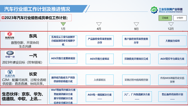 會議由汽車行業組聯執主席李宏偉主持。李宏偉先對汽車行業組工作推進情況和2023年工作構想做了整體介紹,2023汽車行業組將以“數智創新,開放協同,生態共建”為主線,拓展新勢力車企、汽車智能網聯相關科技公司加入聯盟,圍繞汽車研、產、供、銷、服五大業務場景展開數字化應用專題研討和實際案例分享,促進汽車行業數字化轉型。